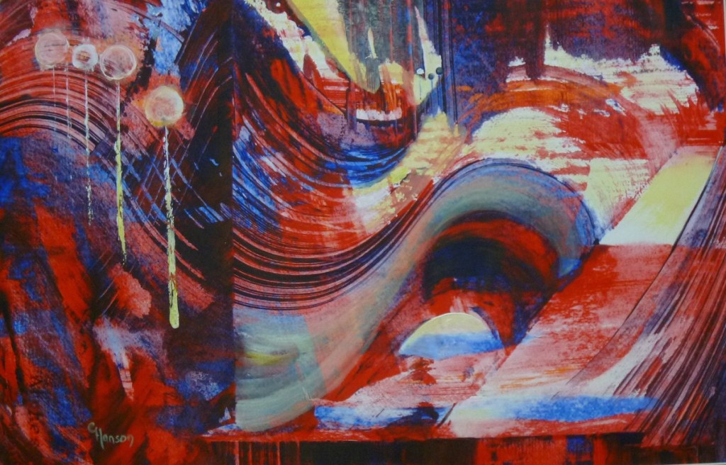 Watercolor Click each photo to enlarge. Abstract with Moon Bling Early Spring October Song Passing Squall Repose in Old Lace Respite She shall have Hollyhocks Kite Flyer Liquid Landscape When I Dream Frozen Abstract Spun Gold Autumn Woods Guest House Happened Upon First Blush Mountains through Wildflowers Trumpets Rhythms of the City Backwater Crossing Contact me for more information at crhanson01@gmail.com